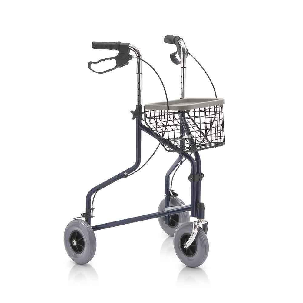 Ходунки-роляторы от других отличаются большей маневренностью: все ножки у таких моделей оснащены колёсами. Управлять роляторами нелегко, поэтому их чаще всего назначают людям с хорошей координацией, которым нужна лёгкая поддержка. У роляторов есть система торможения, сиденье для отдыха и корзинка для вещей.