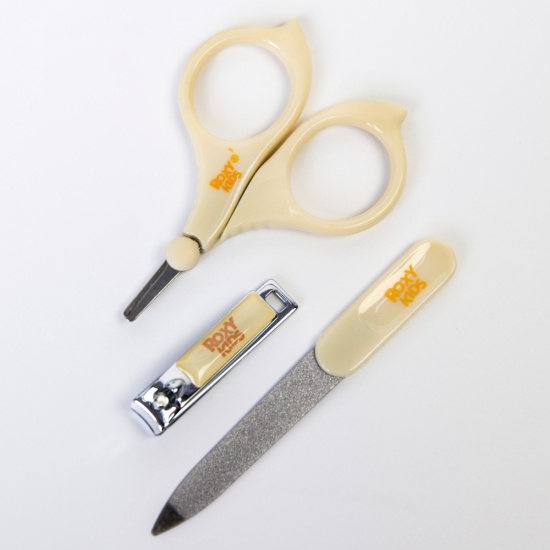 Маникюрный набор для новорожденных и малышей 3в1 от ROXY-KIDS поможет полноценно ухаживать за первыми ноготочками малыша. Детские ножницы, пилочка и кусачки от созданы специально для того, чтобы ухаживать за ручками и ножками малышей с первых дней жизни. Они совсем маленькие, но тщательно продуманы для того, чтобы стрижка ногтей была максимально удобной и безопасной. К примеру, у ножниц закруглены концы, чтобы в случае, если ребенок сделает резкое движение, они не поранили его. А лезвия из металла очень тонкие, чтобы процесс был оптимально мягким.