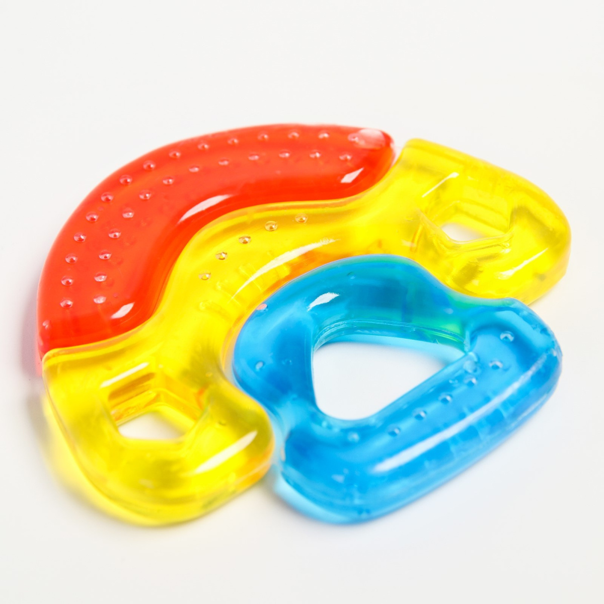 Специальная жидкость внутри поможет снизить воспаление в ротовой полости и снять болевые ощущения. Для охлаждения прорезывателя поместите его в холодильник на 10‒15 минут. Форма ручки и размеры разработаны специально для детской ладони, поэтому малышу будет удобно её держать. Рельефная структура на поверхности изделия и его дополнительных элементов будет способствовать развитию мелкой моторики, а яркие цвета — формированию визуального восприятия мира.