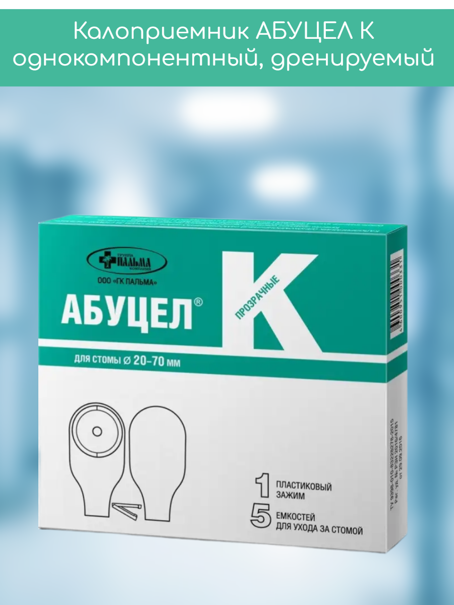 Однокомпонентные калоприемники АБУЦЕЛ представляют собой емкости из запахонепроницаемой пленки. Двойная система крепления - липкий фланец и герметизирующее кольцо - надежно удерживает емкость на теле пациента и обеспечивает герметичность и отсутствие запаха. Кроме того, материал кольца обладает ранозаживляющими свойствами. Емкости комплектуются пластиковым зажимом, позволяющим удалять содержимое и промывать калоприемник, не снимая его со стомы.
