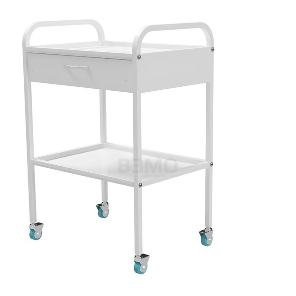 Медицинский столик СМИ-02-01-М предназначен для размещения медицинских инструментов, лекарственных препаратов и приборов. Применяется в качестве стола стоматолога, хирурга и терапевта, а также подойдет для кабинета косметолога в beauty и tattoo-индустрии. Каркас стола выполнен из профильной стальной трубы 20х20 мм. Полки изготовлены из металла. Столик укомплектован пластиковыми колесами диаметром 50 мм, два из которых с тормозом.