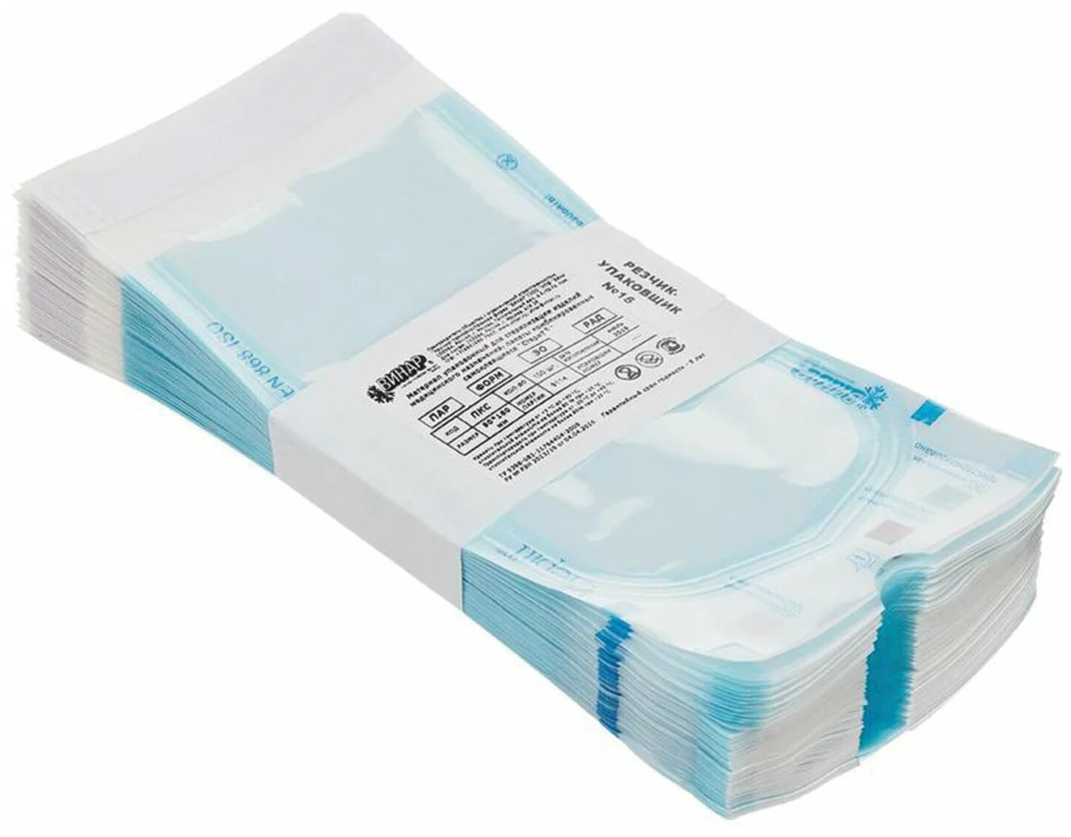 Пакет д/стерил.комбинир. 150 х 300 мм самокл. 100 шт/уп СтериТПакет комбинированный предназначен для упаковывания медицинских изделий, подлежащих стерилизации (воздушной, паровой, газовой (этиленоксидной и пароформальдегидной) и радиационной), с целью обеспечения их стерильности после стерилизации при хранении и транспортировании до использования по назначению. Пакет изготовлен из белой бумаги и прозрачной лавсановой пленки, с химическими индикаторами 1 класса, позволяющими отличать пакеты, подвергавшиеся стерилизации, от не подвергавшихся. На выступающей части бумажной стороны (клапане) нанесен липкий слой, защищенный антиадгезивной бумагой. Размер пакета: ширина - 150+5 мм, длина - 300+5 мм. В упаковке - 100 штук. Срок годности не менее 7 лет. Срок сохранения стерильности не менее 5 лет. Остаточный срок годности не менее 36 месяцев на момент поставки. Продукция имеет регистрационное удостоверение как медицинское изделие.