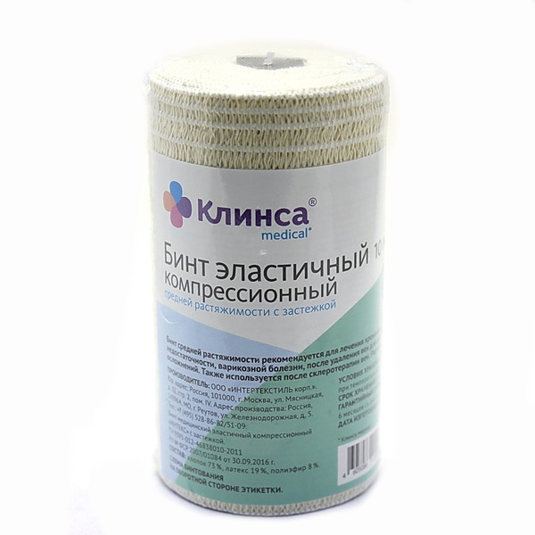 Бинт эластичный компрессионный высокой растяжимости КЛИНСА (Интекс)8смх1,5м