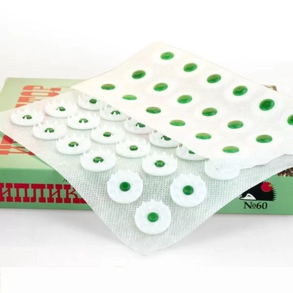 Иппликаторы имеют конфигурацию прямоугольной формы с пластмассовыми иглами с шагом между ними 6 мм.