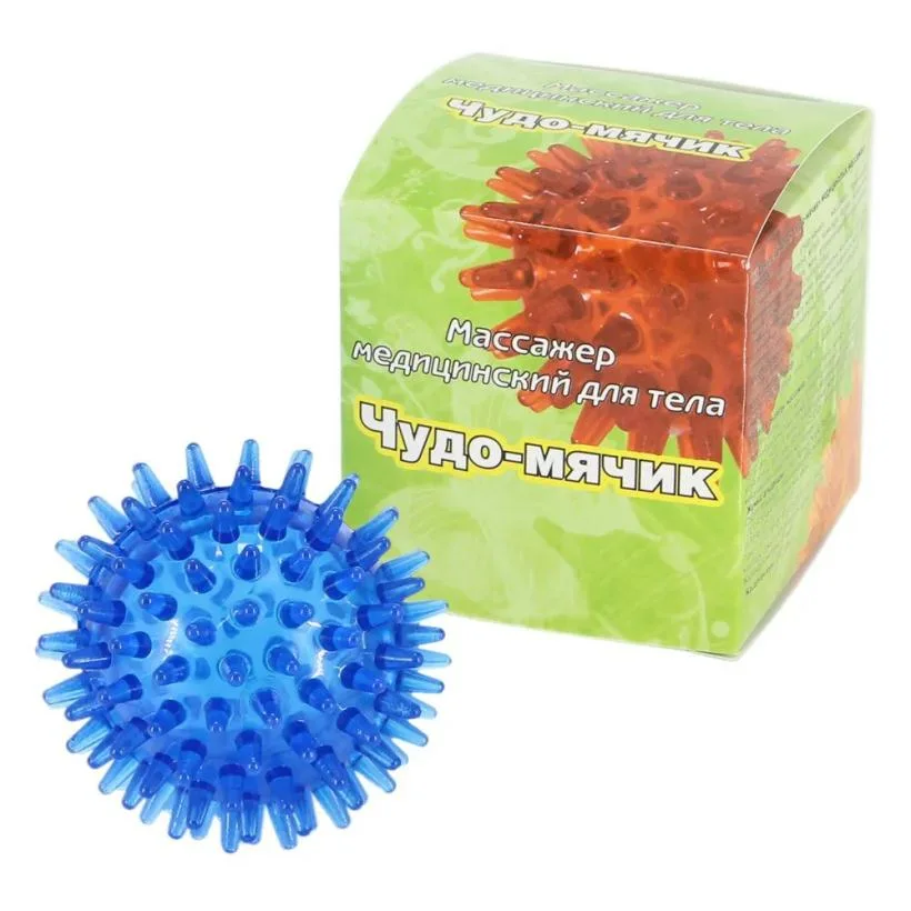 Выступы-шипы на поверхности изделия способствуют снятию стресса, стимулируют кровообращение, повышают эластичности тканей, улучшают мелкую моторику. Мячик можно использовать при реабилитации после травм и операций.