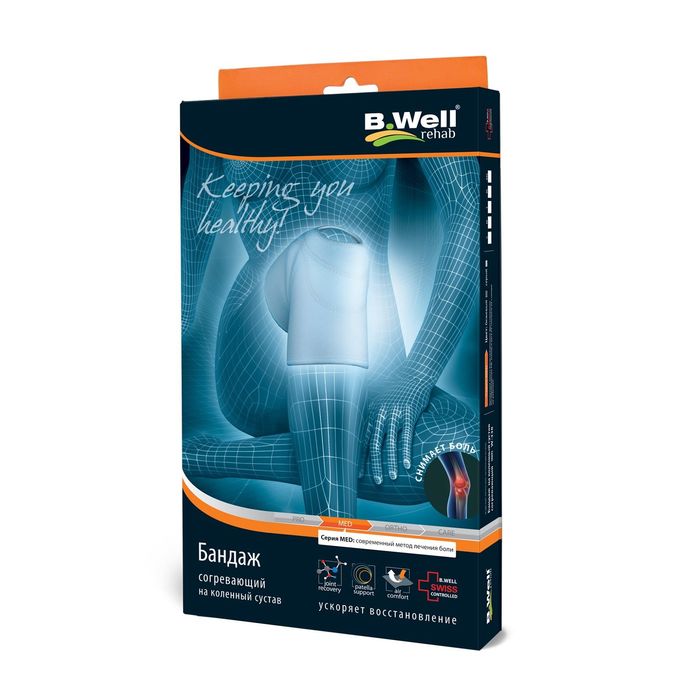 Согревающий бандаж на коленный сустав, MED, из тонкого аэропрена, с 6-ти слойной накладкой и усиливающей вставкой-кольцом.