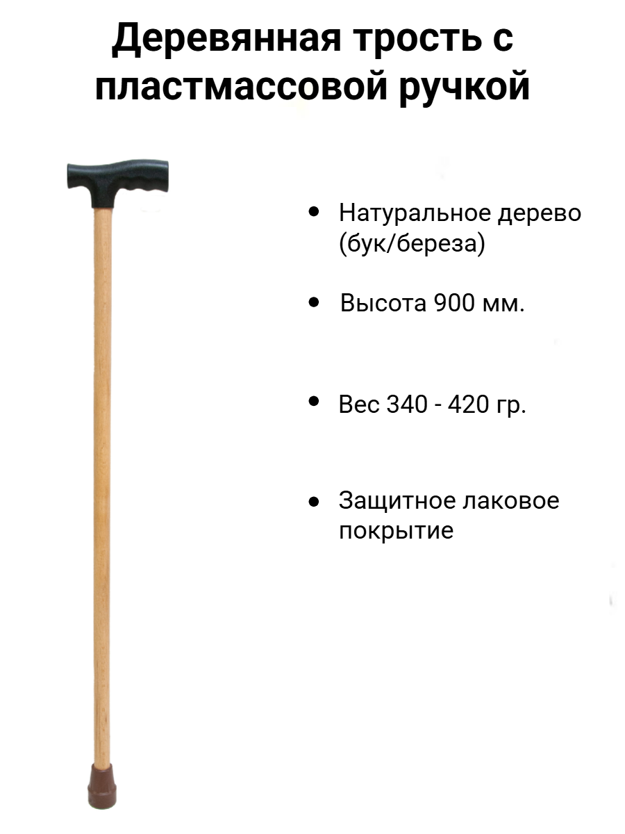 ДЕРЕВЯННАЯ ТРОСТЬ С ПЛАСТМАССОВОЙ РУЧКОЙ ИПР