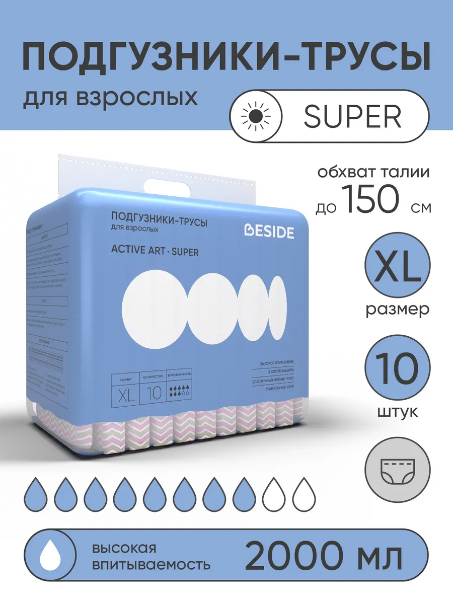 Подгузники-трусы однораз. для взрослых BESIDE Active Art/Super зигзаг,раз.XL.10/8 арт.28102